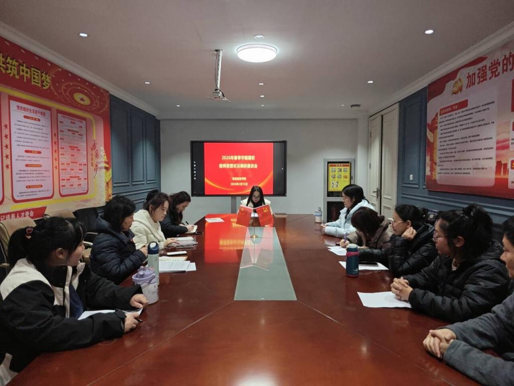 为了进一步了解和把握新学期学院教师思想动态,凝聚教师队伍共识,稳步推进学院高质量发展,3月18日中午,英语语言学院在西语101会议室召开2026年春季学期期初教师座谈会。英语语言学院执行院长徐光霞、各系、大学英语教学中心主任、教职工代表以及教学秘书参会。