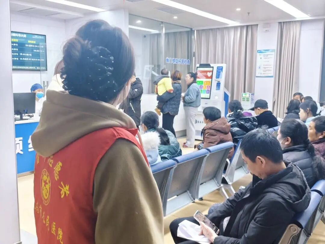 此次活动以“服务基层、温暖民心”为核心,童玲颖同学驻守在消化胃镜检查中心的缴费、取号机岗位,化身“医路向导”。她不仅用方言沟通、手把手教学,帮助老年患者跨越智能设备的使用障碍,更以专业的共情能力安抚患者情绪,用实际行动诠释了“人文关怀”的深刻内涵。从协助老人完成医保电子凭证绑定,到为特殊情况的患者开辟人工窗口通道,每一个细节都彰显着新时代青年的责任与温度。