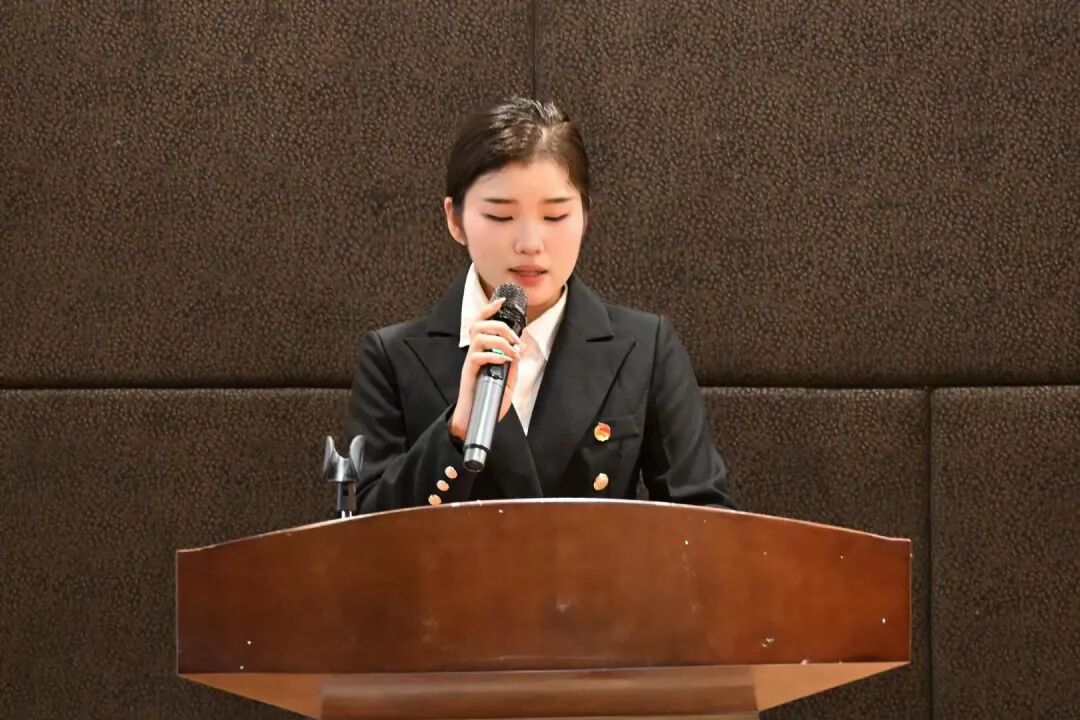 随后,校团委融媒体中心新任副主任牛若菲上台发言,她表示,将带领团队坚守“内容为王”的初心,聚焦有温度的校园叙事;善用“技术为翼”,勇于尝试AI策划、Vlog等创新形式;同时凝聚“团队为家”的力量,共同将融媒体中心打造成为更有影响力、更具青春味的“校园信息家园”。