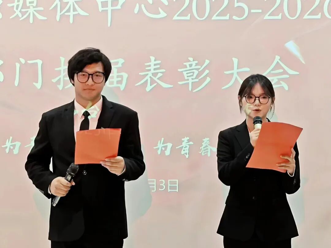 为强化校园融媒体宣传阵地建设,凝聚青年宣传力量,推动校园文化传播工作焕发新活力,11月3日,我校2025-2026学年校团委融媒体中心换届表彰暨新生动员大会于图书馆放映厅顺利举行。
