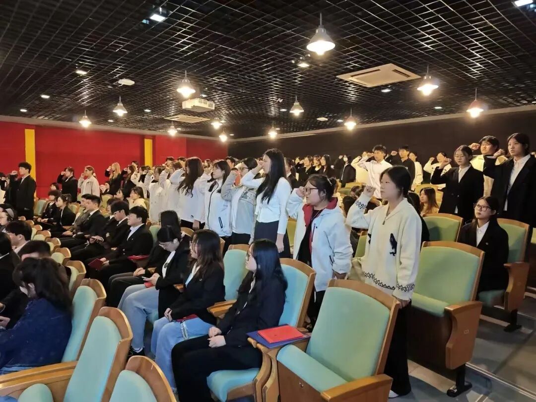 大会在庄严的《光荣啊,中国共青团》歌声中拉开帷幕,全体人员肃立齐唱,专注的神情中映照着坚定的信仰,激昂的旋律承载着青春激情在会场久久回荡,让现场每位成员精神为之振奋。
