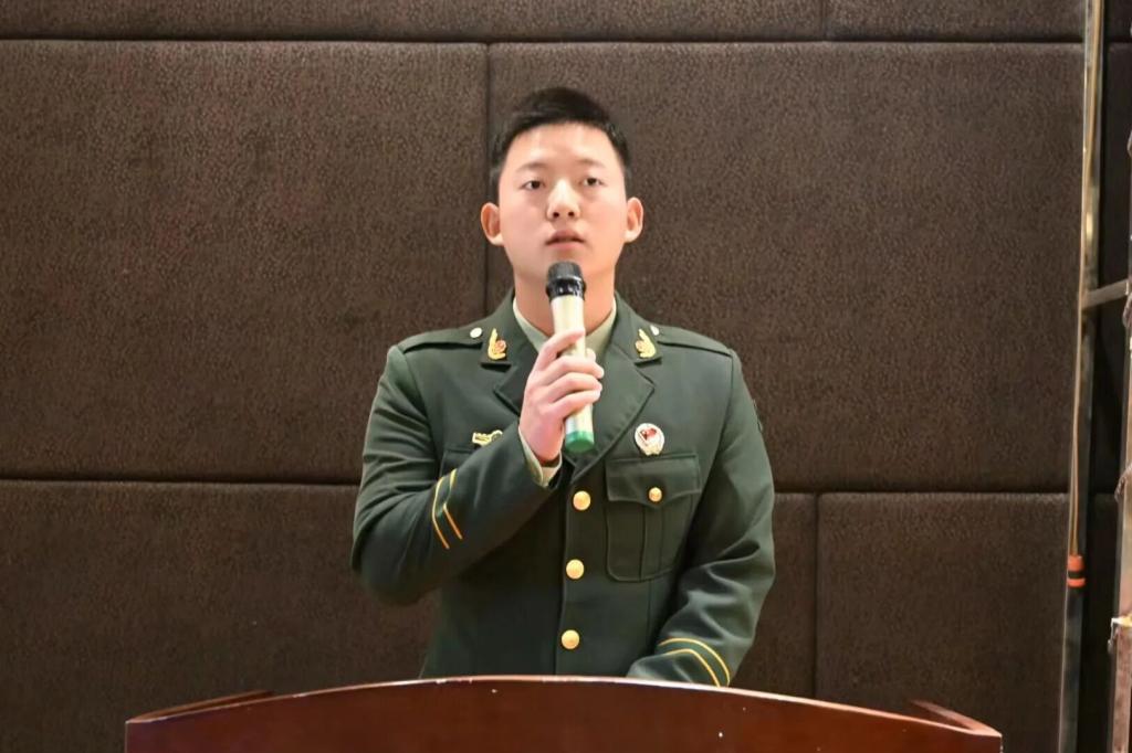 新任指导员陈家鑫上台发言,他对未来国旗护卫队与国防连的未来发展做出了规划,并承诺将以老队员为榜样,严守纪律、刻苦训练,以挺拔的身姿、坚定的信念诠释当代青年的责任担当。