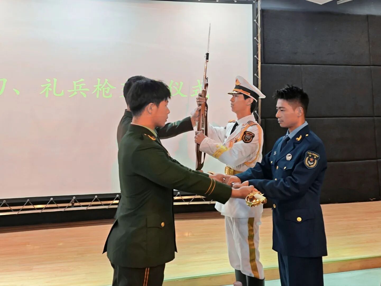 大会进行了庄严的交接仪式。老队员代表将指挥刀和礼兵枪郑重交至新队员代表手中,在交接中传递着忠诚与信仰,象征着国旗护卫队的精神薪火相传、生生不息。