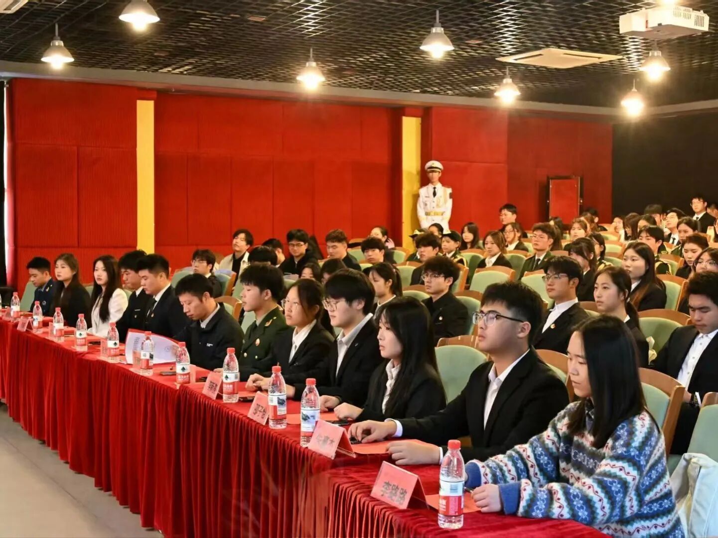 出席本次大会的领导嘉宾有安全管理处副处长、国防教育教研室主任、指导老师张余宝,以及国旗护卫队和国防连全体成员,本次会议由陈梦玲主持。