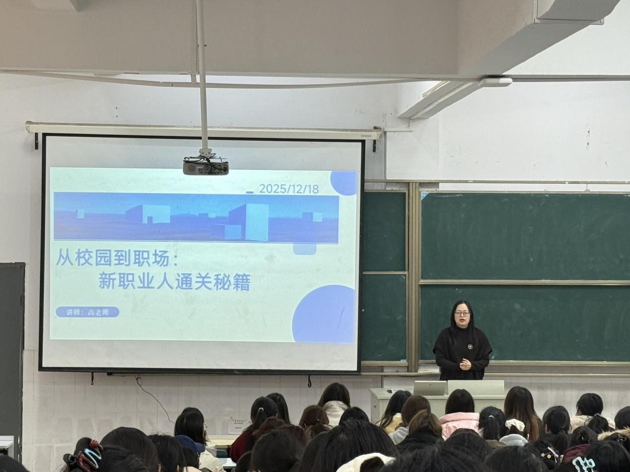 为助力学子破解职场转型难题、夯实职业发展基础,12月18日,英语语言学院在四教106开展“从校园到职场:新职业人通关秘籍”主题讲座。邀请新东方资深职业规划师高梅亲临现场,给即将踏入职场的学子们带来兼具前瞻性与实操性的职业发展指导,为青年学子顺利衔接校园与职场筑牢根基。