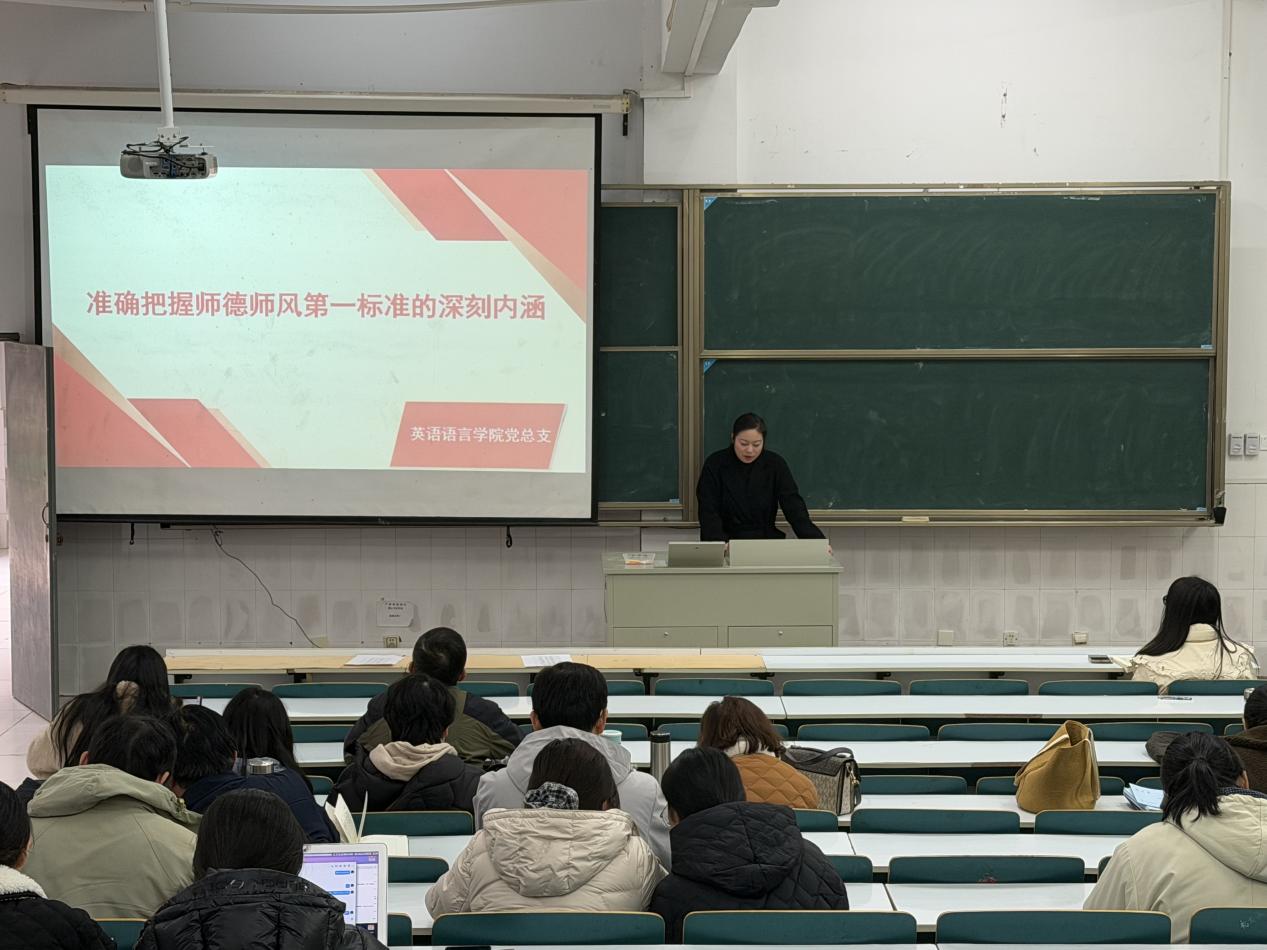 12月24日下午,英语语言学院在第四教学楼106教室召开全体教职工大会。会议由院长周平主持,执行院长徐光霞、党总支副书记韩璐及学院全体教职工参加会议。