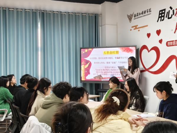 为深化同学们对党的百年奋斗历程的理解,进一步推动党史学习教育走深走实,传承红色基因,坚定理想信念,11月19日,英语语言学院党总支于在25栋一站式学生社区党团活动室成功举办了“入党誓词里的百年征程”党史学习教育专题活动。党总支副书记韩璐、党总支组织员王雪、学工秘书郭睿源出席活动,与学生党员、积极分子代表一同回溯入党誓词历史轨迹,探寻中国共产党百年奋斗征程。