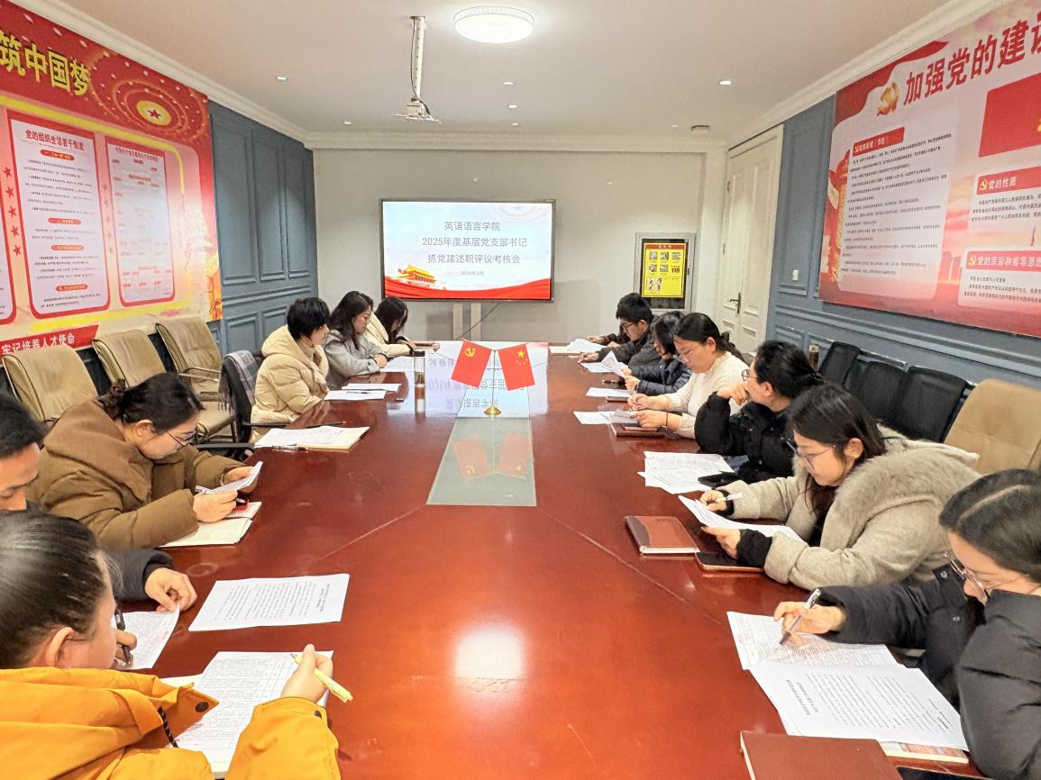 为深入学习贯彻习近平新时代中国特色社会主义思想和党的二十届四中全会精神,全面总结基层党建工作成效,压实党建工作责任,推动学院党建工作高质量发展,3月4日,英语语言学院党总支在西语101会议室召开2025年度党支部书记述职评议工作会。校党委宣传部、统战部部长刘沪娣、英语语言学院党总支书记徐光霞、副书记韩璐、党总支委员、各支部书记以及党员代表参加会议。