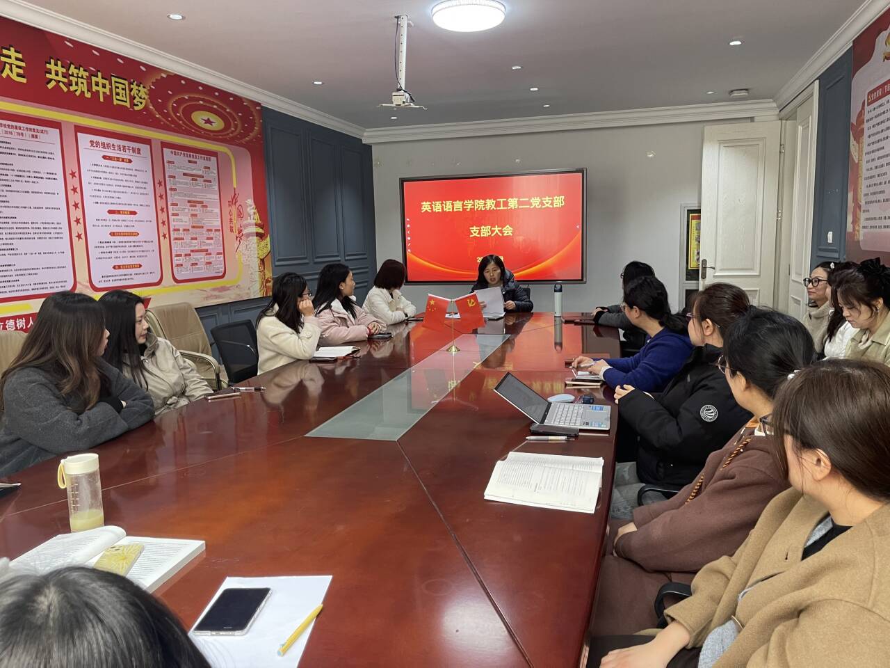 3月18日,英语语言学院教工第二党支部组织召开了支部党员大会。学习贯彻习近平总书记在中共中央政治局民主生活会上的重要讲话精神,本次会议由党支部书记袁同娣主持,全体党员参会。