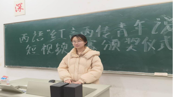 11月24日线上展示阶段,参赛作品以多语种表达搭配生动镜头,既展现了外语专业的语言功底,又将红色精神与青春理想融入其中。评审组从内容契合度、语言表达、创意表现三个维度综合评分,最终评选出一、二、三等奖各1名。