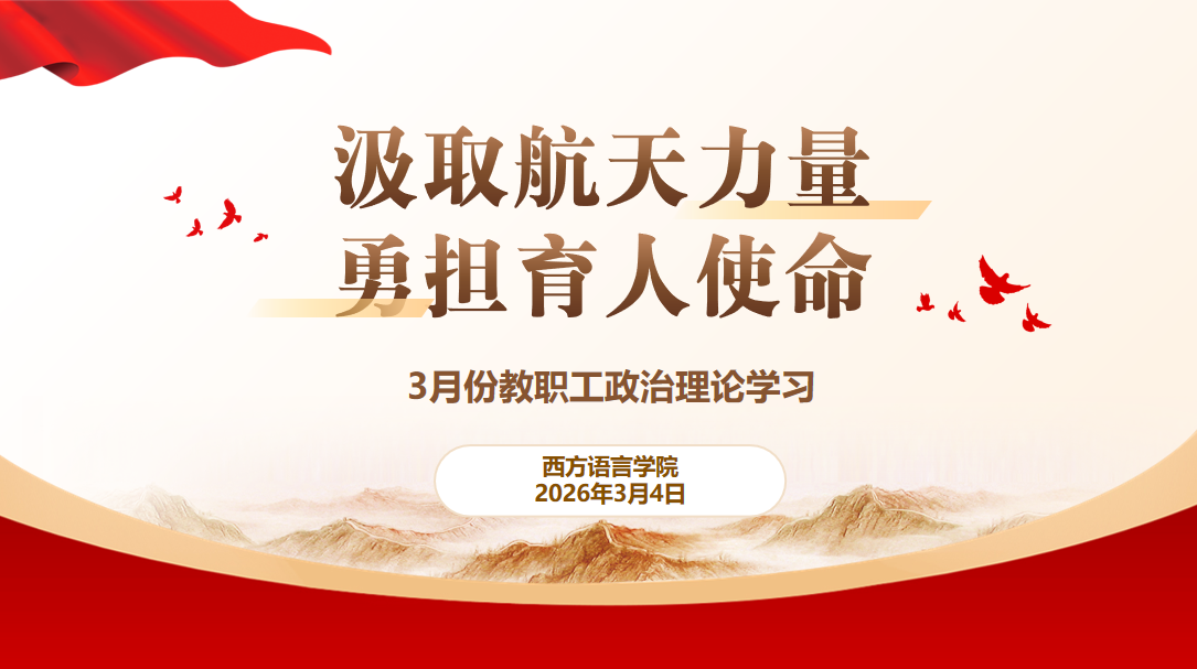为深入学习贯彻习近平总书记重要论述,弘扬航天精神,引导全体教职工立足岗位勇担育人使命,3月4日下午,西方语言学院组织开展3月份教职工政治理论学习,以“汲取航天力量 勇担育人使命”为主题,学院全体教职工参加。