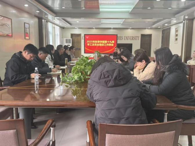 1月5日下午,学生处于行政楼207会议室召开2025年秋季学期第十九周学工及安全稳定工作例会。副校长刘银国出席,党委宣传部、学生处、教务处、安全管理处、总务处、图文信息中心、团委等部门负责人,各二级学院党总支副书记、学工秘书参会。会议由学生处处长徐桂香主持。