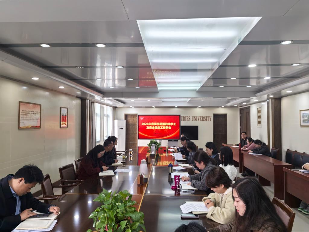 3月23日下午,我校在行政楼207会议室召开2026年春季学期第四周学工及安全稳定工作例会。副校长刘银国出席会议并讲话,党委宣传部、学生处、教务处、安全管理处、总务处、图文信息中心、团委等部门负责人,各二级学院党总支副书记、学工秘书及相关工作人员参会。会议由学生处处长徐桂香主持。