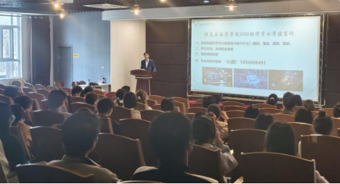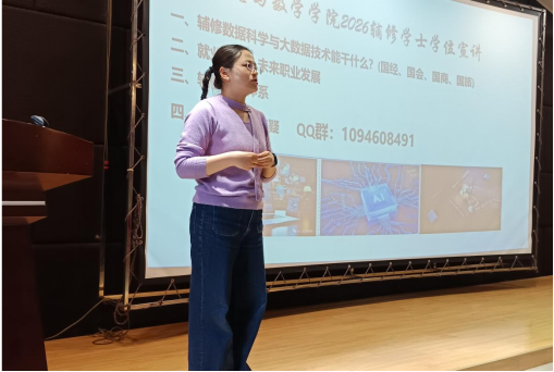 为顺应数字经济发展趋势,拓宽学生成才路径,4月10日中午,信息与数学学院在图书馆一楼放映厅成功举办2026年数据科学与大数据技术辅修专业招生交流会。本次交流会以“数据赋能未来,辅修成就不凡”为主题,吸引了各学院众多2024级、2025级本科生踊跃参与。交流会由学院执行院长陈姣姣主持,计算机系主任王世贵担任主讲。