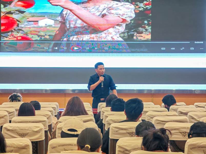 讲座特邀安徽日报高级编辑、知名视频评论员华睿主讲,他凭借自己丰富的AI实操经验,对行业的前沿洞察,为现场师生带来了一场兼具深度与实用性的知识盛宴,让大家听了耳目一新、深受启发,也让学生看到了AI时代文科生发展的全新机遇。