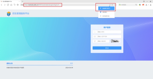 1. 推荐使用360浏览器(极速模式)打开网址:http://zsxt.aisu.edu.cn:8187/zsxt/web/xsLogin/login.zf